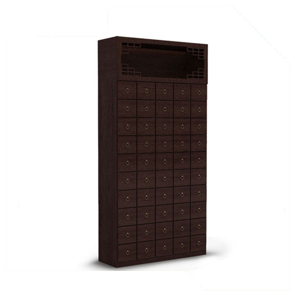 • 產(chǎn)品描述:這是金麗聲貨架專為藥店中藥區(qū)打造的一款紫檀木紋中藥柜。