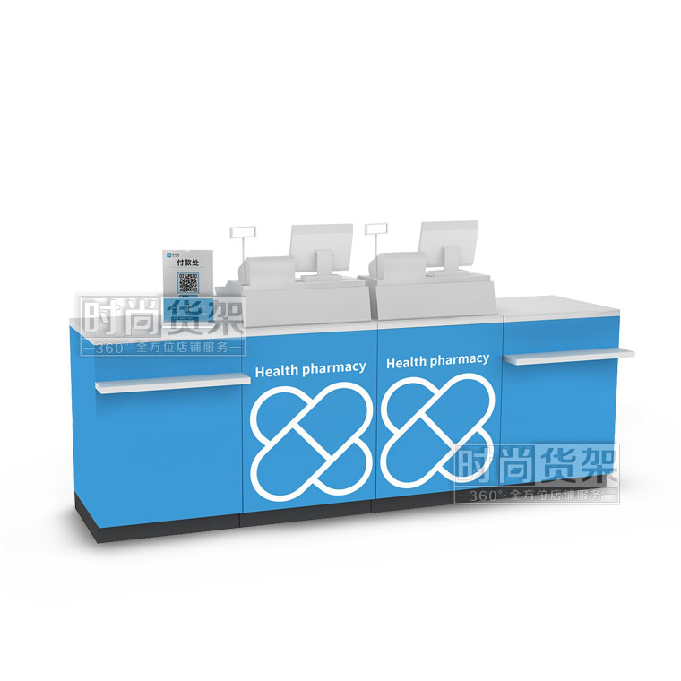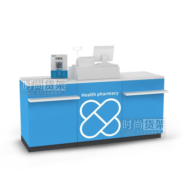 這是金麗聲貨架推出的最新款藥店收銀臺,如需了解其他藥店貨架產品,請點擊www.zstianbao.com/pharmacy/。