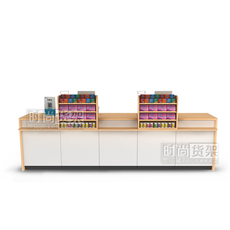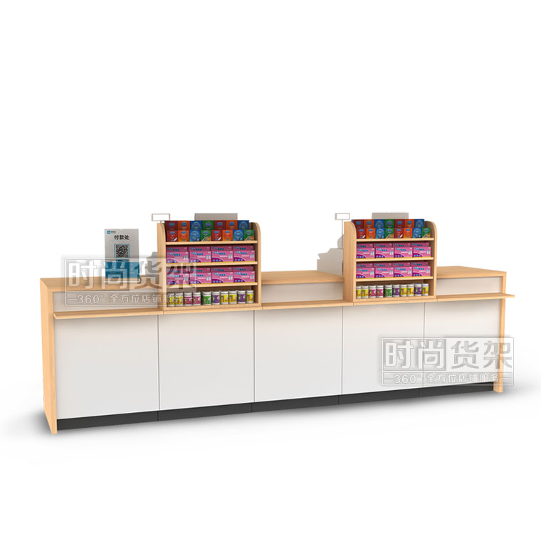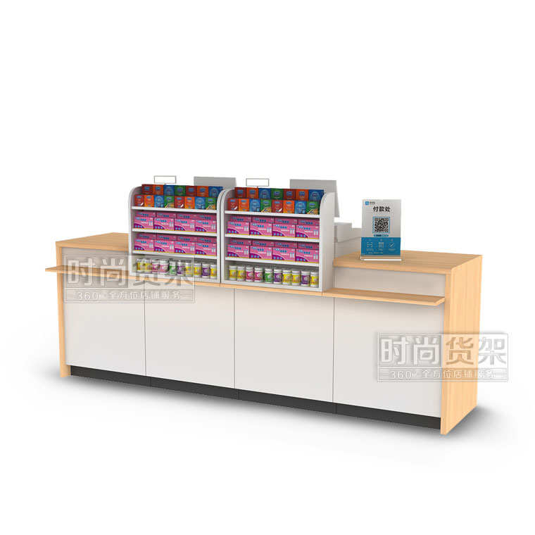 - 產(chǎn)品描述:這是金麗聲貨架專為藥店收銀區(qū)陳列打造的一款紅櫻桃木紋收銀臺(tái)。