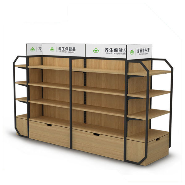 藥店中島貨架 木背板藥店貨架 雙面藥店貨架 非處方藥貨架 鋼木藥店貨架