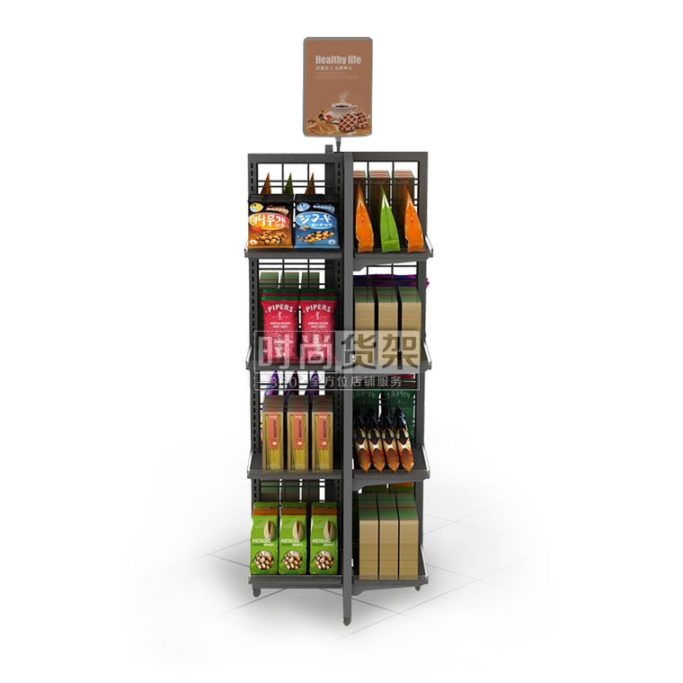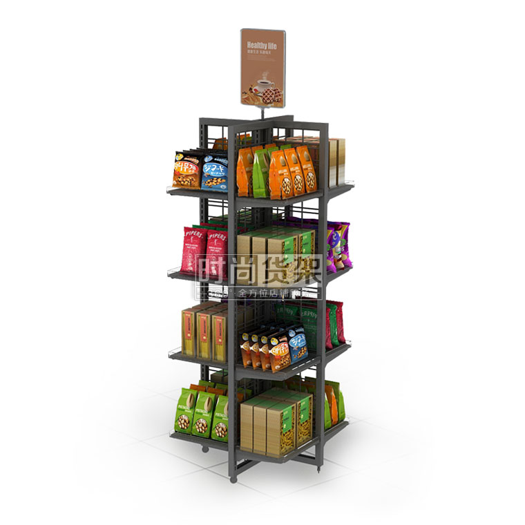 • 產品描述:冷軋鋼材承重力強、穩固性高,便利店促銷展示架是一款多面陳列展示神器,剎車輪設計方便移動。