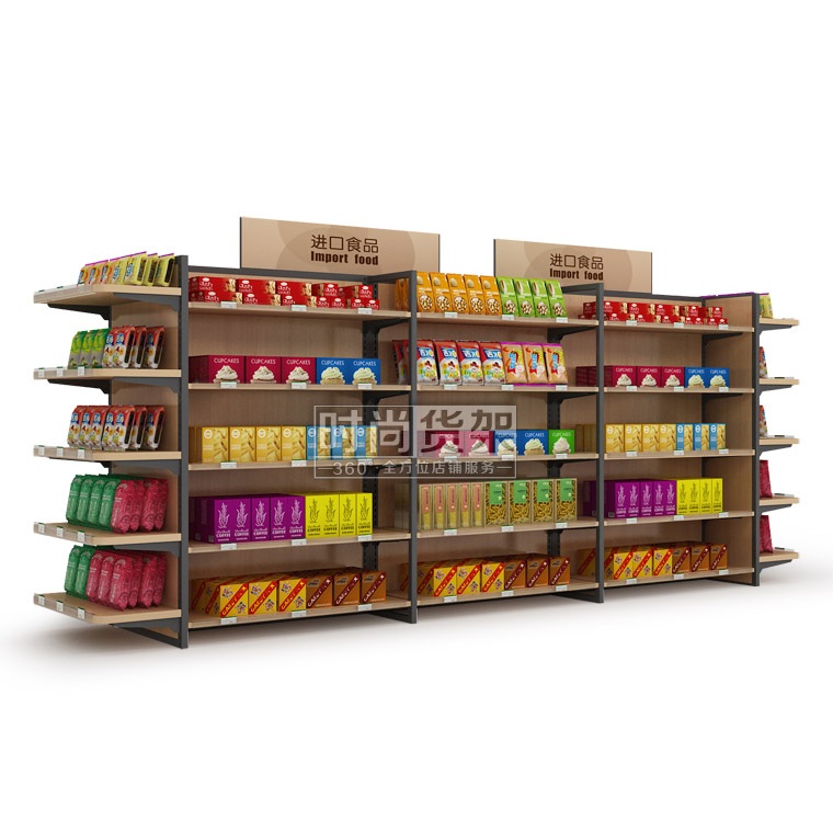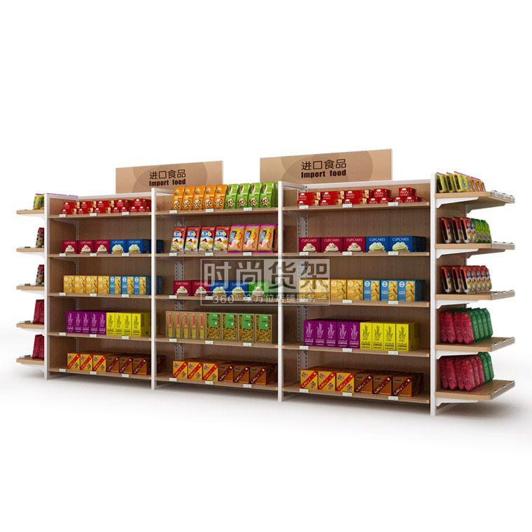 便利店零食貨架 雙面食品展示架 便利店進口食品貨架 木背板便利店貨架